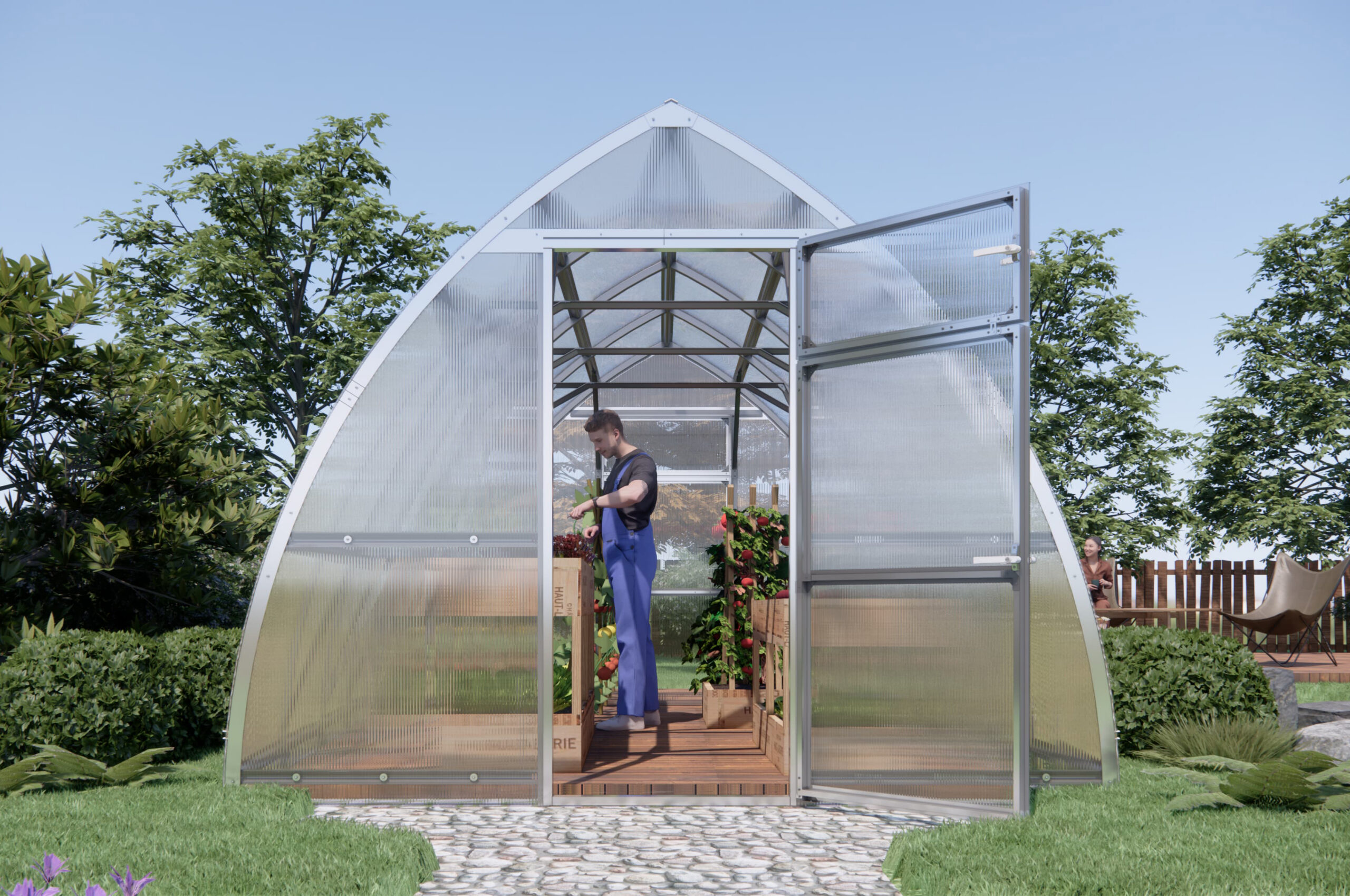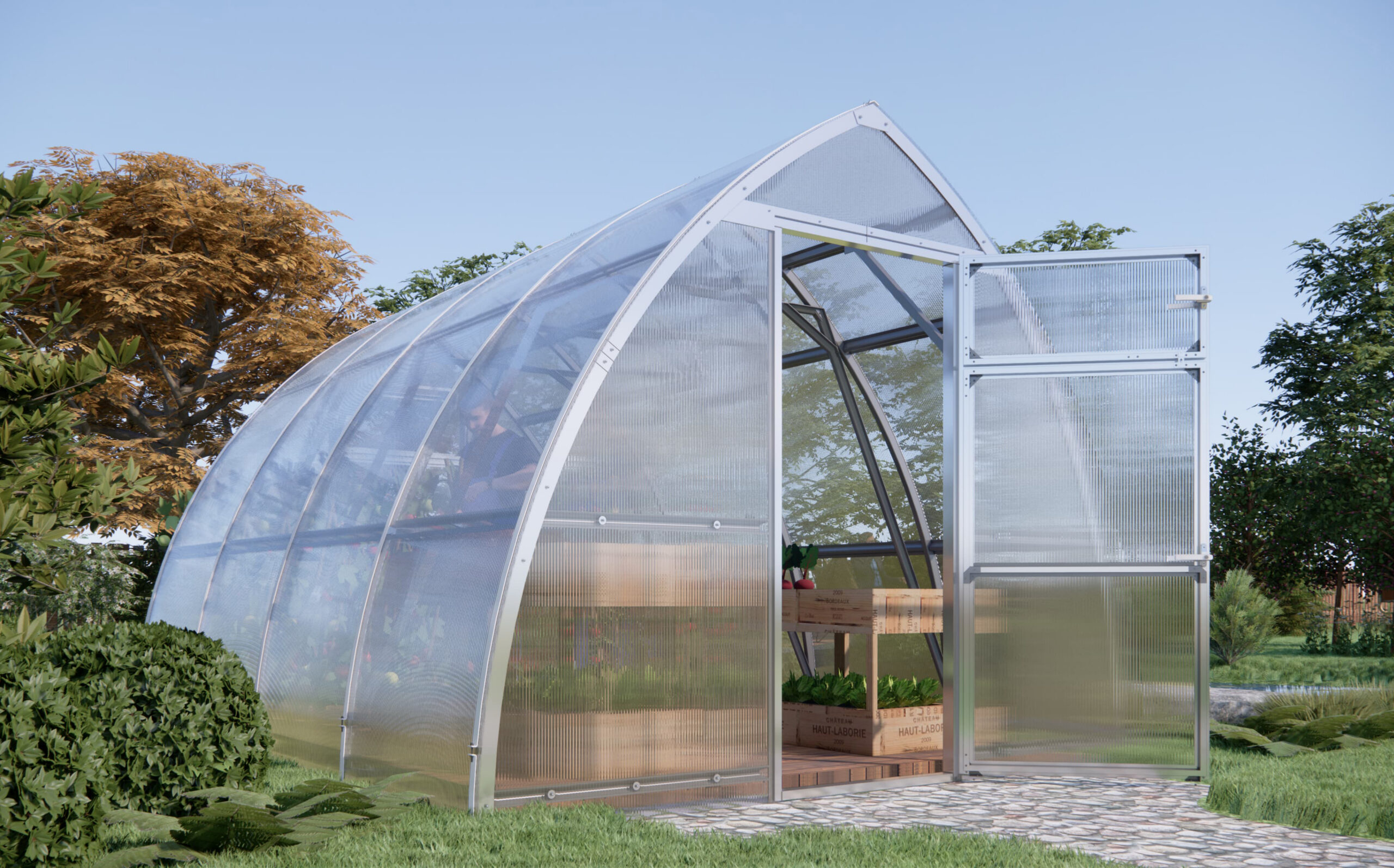 – Maksimaalne tugevus. Kasvuhoone talub lumekoormust kuni 360 kg/m² (esialgsete arvutuste põhjal) — usaldusväärne lahendus külma kliimaga piirkondadesse.